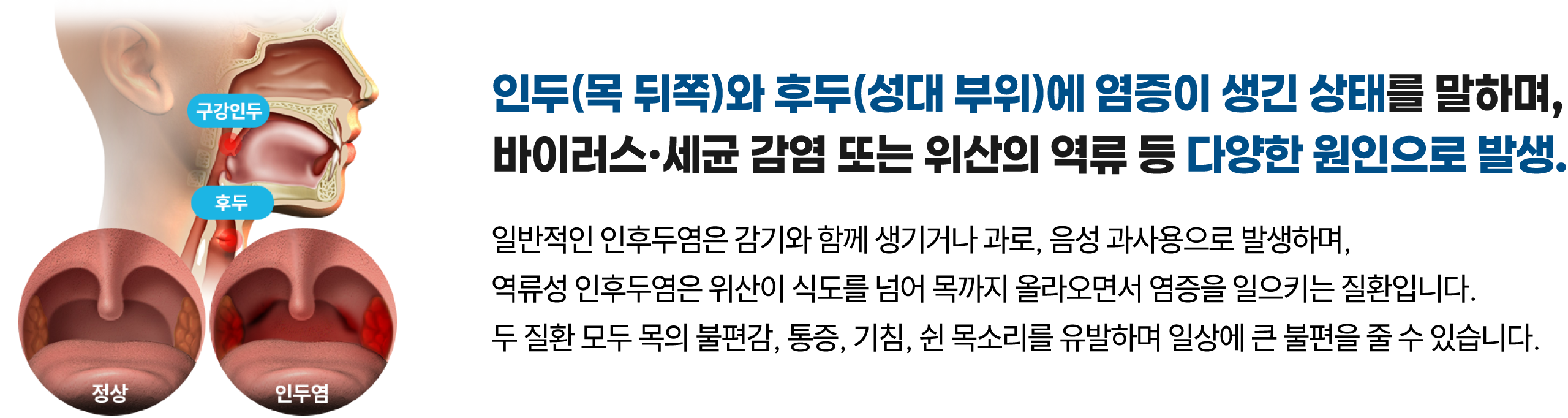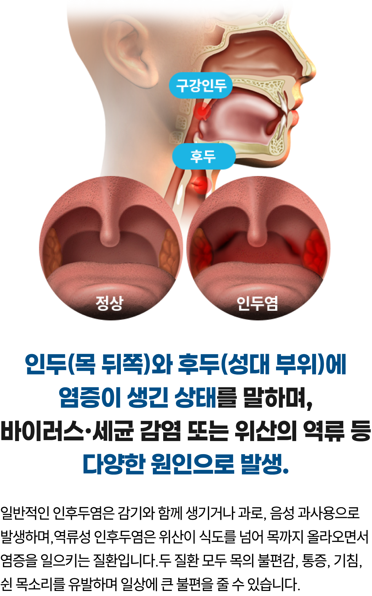 인후통 및 연하통(삼킬 때 통증)